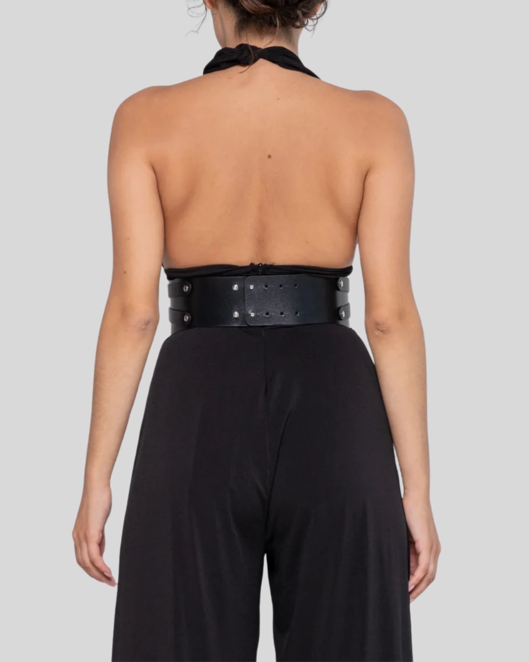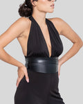 Whether you're cinching a halter jumpsuit, layering over a fitted dress, or styling a minimalist evening set, this piece delivers standout fashion with quiet power.