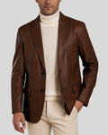 The chocolate leather blazer for men blends sharp tailoring with elevated casualwear, offering a confident statement piece for refined wardrobes. Crafted from supple lambskin leather in a rich chocolate brown hue, this blazer balances structure and softness with smart detailing.