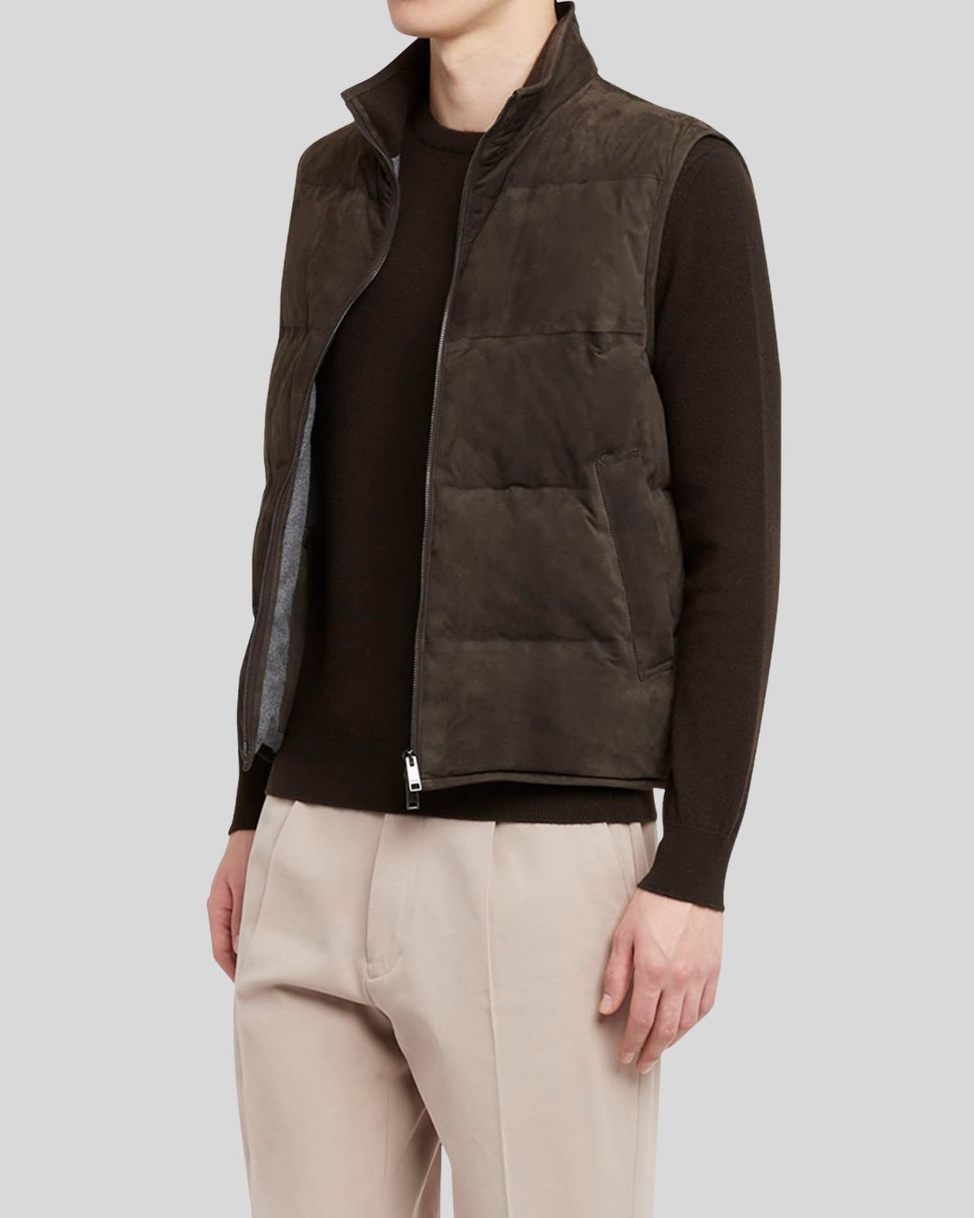 Crafted to blend warmth and modern utility, this outerwear essential is the perfect mens suede puffer vest for those who live in motion.