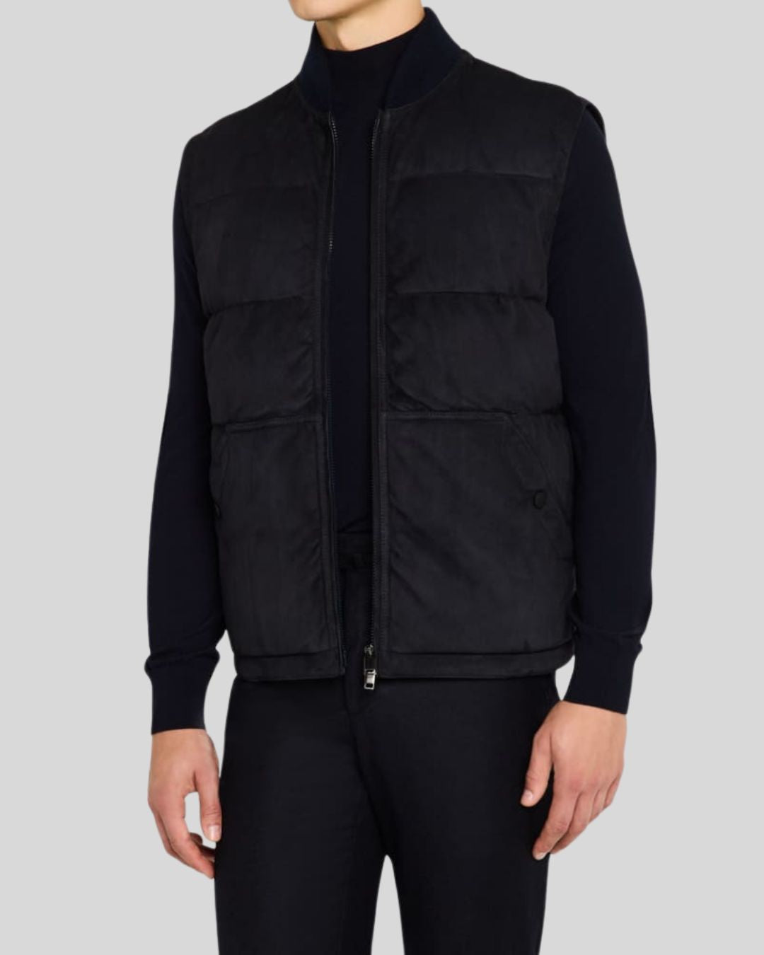 For those seeking a versatile outerwear staple with refined craftsmanship, this black suede puffer vest is a wardrobe essential for chill-season utility and timeless monochrome fits.